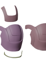 - The helmet is broken down into pieces for easier printing and finishing.