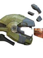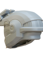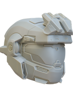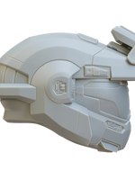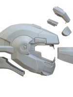 The Helmet is breaks down into 3 parts: Helmet, Back, and Visor. The Back and Helmet strap can be joined with magnets or cast in flexible urethane or silicone rubber for an authentic look with the included 3D printable mold. There is also a visor buck is included for vacuum forming. Also included is the  attachment that Jorge is most notable for wearing.